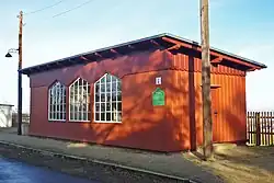 The exhibition features display boards with photos and drawings, historical artefacts, and a souvenir shop with railway literature. The 1920 goods shed houses a mechanical Jüdel signal box, operational since 1957, the line’s only one.[34]