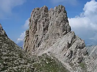 The Freiungspitzen (plural) are a group of 3 peaks in the Erlspitze Group in the Karwendel Alps on the territory of the Austrian municipality of Zirl. The highest summit, the west top, has a height of 2,332 m (AA), the middle top is 2,322 m (AA) and the east top is 2,302 m (AA).[1][2]