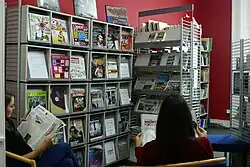 You can read or borrow newspapers like: Libération, Le Monde, Le Point, general-interest magazines: ELLE, Les Inrockuptibles and more specialised magazines like Beaux-Arts and Positif. The CD & DVD shelves contain 1500 CDs (audio-books and music) and almost 1000 films and documentaries.