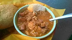 Creole also often refers to the haute cuisine of New Orleans, with dishes greatly influenced by European-trained chefs.[28] Cooking techniques and recipes are passed down through families across generations, often through oral tradition and observation.[28][30] Traditional community activities, such as the Boucherie (hog-killing), are a way to maintain community ties and collective memory, where people jointly slaughter, prepare, and share every part of the pig.[30]