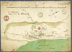 The basic structure of the compagnies franches de la marine, as the infantry of the troupes de la marine were called after 1690, remained unchanged between 1690 and 1761.[4] Through the initiative of governor Denonville, the rank of second ensign was added to the complement in 1699, explicitly in order to recruit young Canadians of good families to the officer corps.[5] Although the free companies per definition lacked a higher organization, a small staff existed above company level, containing a surgeon, a chaplain, a clerk of the muster, and a drum-major. In 1687 the rank of "commandant of the troops in Canada" was created, with a major as his chief of staff added to the organization in 1691.[6]