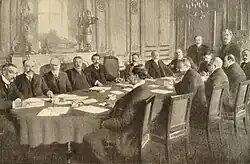 On October 14, 1908, Merry del Val wrote to the authors of the Déclaration and stated that the Pope would be pleased if they conferred with the three metropolitan bishops of France (North, South-East and South-West) to study the measures to be taken regarding the school question and refer them to the Holy See. The correspondence was aimed at establishing clear communication lines between both parties.[20] The Secretary of State proposed regional or provincial meetings to facilitate the exchange of views but excluded the possibility of a general assembly since it would be uncontrollable. Additionally, he proposed a plan of action: "Undoubtedly, the episcopate will recognize that school neutrality is harmful and deceptive, and therefore, an energetic struggle must be waged against it."[21]