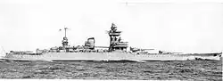 The French Navy's design staff spent the decade following the 1922 Washington Naval Treaty attempting to produce a satisfactory design which would allow several ships to be built within the 70,000-ton limit allowed by the treaty.[1] Initially, the French sought a reply to the Italian Trento-class cruisers of 1925, but all proposals were rejected. A 17,500-ton cruiser, which could have handled the Trentos, was inadequate against the old Italian battleships, however, and the 37,000-ton battlecruiser concepts were prohibitively expensive and would jeopardize further naval limitation talks. These attempts were followed by an intermediate design for a 23,690-ton protected cruiser in 1929; it was armed with 305 mm (12 in) guns, armored against 203 mm (8 in) guns, and had a speed of 29 knots (54 km/h; 33 mph). Visually, it bore a profile strikingly similar to the final Dunkerque-class design.[2][3]