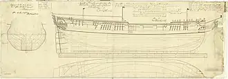 ![]() Royal Navy plan of Etna as taken off in 1796, prior to being fitted as a 20-gun sixth-rate post-ship