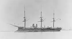 After the war ended, the French began to disperse the warships that had gathered in East Asia, and Duguay-Trouin and Châteaurenault were recalled to France.[23] After arriving home, she was taken into the shipyard at the Arsenal de Cherbourg for an extensive modernization that lasted from 1 November 1885 to 15 September 1887. She carried out speed testing on 11 April 1888.[2] In 1891, Duguay-Trouin was in reserve at Cherbourg, and she was mobilized to take part in the annual fleet maneuvers in June and July that year. At the time, the other ships at Cherbourg included the ironclad Turenne, the coastal defense ships Vengeur, Tonnerre, and Tonnant, the unprotected cruiser Fabert, the torpedo cruiser Epervier, and several smaller vessels. They did not participate in formal maneuvers, and each vessel went to sea individually to train their crews.[24][25]