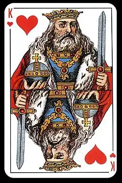 - ^ Since 1813, from 1613–1813 this card carried the manufacturer's name, before 1613 it was Judas (Maccabeus)