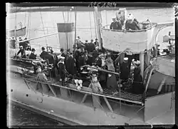 When the First World War began in August 1914, Durandal was one of the leaders (divisionnaire) in the 2nd Submarine Flotilla (2ère escadrille sous-marins) of the 2nd Light Squadron (2e escadre légère)[8] based at Cherbourg.[9] On 12 October, Durandal, the destroyer Escopette and the auxiliary cruiser Pas de Calais (a converted paddle packet ship), engaged the German submarine U-20 off Cap Gris-Nez.[10][11]