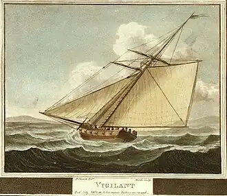 - ^ Lloyd's Patriotic Fund awarded Dynely with a silver vase worth £50.[5] However, he was killed in 1808 in an engagement with the French privateer Confiance, which captured Duke of Montrose.[6] The vase ended up in the ownership of the Falmouth Town Council and now is on display in the Falmouth Packet Gallery at the National Maritime Museum of Cornwall.[7]