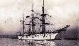 In 1911 Eure was stripped at Nouméa to become a hulk and sent to Sydney, where she was sold to the Northern Steamship Company in 1912. On 26 January 1913 she arrived at Auckland, towed by the steamer Ihumata.[2] The hulk held up to 2,000 tons of coal.[3] In 1939 she was towed to nearby Sulphur Beach and sold for breaking up, which was done by 1942.[2] Masts from the ship still lay on the beach in the 1960s.[4]