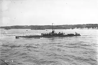 For surface running, the boats were powered by two 350-metric-horsepower (345 bhp; 257 kW) triple-expansion steam engines, each driving one propeller shaft using steam provided by two Du Temple boilers. When submerged each propeller was driven by a 230-metric-horsepower (227 bhp; 169 kW) electric motor.[3] On the surface they were designed to reach a maximum speed of 12 knots (22 km/h; 14 mph) and 8 knots (15 km/h; 9.2 mph) underwater.[1] The submarines had a surface endurance of 865 nautical miles (1,602 km; 995 mi) at 11.6 knots (21.5 km/h; 13.3 mph) and a submerged endurance of 70 nmi (130 km; 81 mi) at 2.8 knots (5.2 km/h; 3.2 mph).[4]