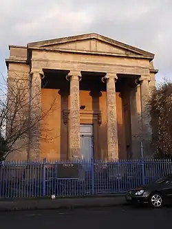The Freud café is housed in the former St Paul's Church, a Greek Revival building designed in 1836 by Henry Jones Underwood.[2][3] The church was inspired by an outbreak of cholera in the area in 1831.[4] The building has an imposing portico with Ionic columns. The architect Edward George Bruton added the apse in 1853 and Frederick Charles Eden remodelled the interior in 1908.[3]