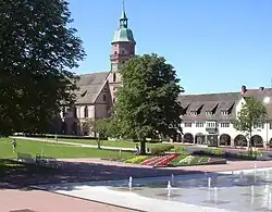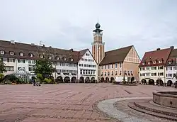 Freudenstadt (German pronunciation: [ˈfʁɔʏdn̩ˌʃtat] ⓘ; Swabian: Fraidestadt) is a town in Baden-Württemberg in southern Germany. It is the capital of the district Freudenstadt. The closest population centres are Offenburg to the west (approx. 36 km away) and Tübingen to the east (approx. 47 km away).
