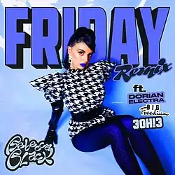 On February 8, 2021, Rebecca Black teased a 10-year anniversary remix of "Friday" featuring "some iconic people" on Twitter.[101] The remix was released on February 10, 2021, and features vocals from crunkcore duo 3OH!3, New Orleans's "queen of bounce" Big Freedia, and alt-pop musician Dorian Electra, alongside production from Dylan Brady of 100 gecs.[102][103][104] Of her choice of collaborators for the remix, Black explained: "I'd had the idea to do this remix of 'Friday' for years leading up to now, but honestly it was also mildly insane for me to think anyone else would want to be a part of it".[102]