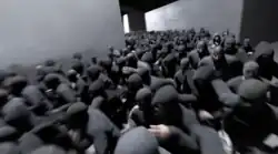 The music video for "Fried" is minimalist, and runs for two-and-a-half minutes. The video shows a large group of masked individuals wearing black hoodies and pants running through an eerie concrete setting, consisting of geometric structures and walls.[18][21] They seem to run across hallways continuously, which infinitely stretch outwards. The music video led to mixed reactions from fans; some felt it worked well as a visualizer, while others were confused as to how it connected to the song.[21]