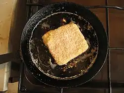 Fried cheese is a dish of cheese that is fried in oil.[1] Fried cheese can be dipped in a batter before frying, and can be pan-fried or deep fried.[2] It can be served as an appetizer or a snack.[2][3]