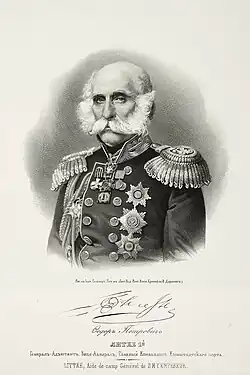 Friedrich Benjamin Graf[1] von Lütke (Russian: Фёдор Петрович Литке, romanized: Fyodor Petrovich Litke; 28 September [O.S. 17 September] 1797 – 20 August [O.S. 8 August] 1882) was a Russian navigator, geographer, and Arctic explorer. He became a count in 1866, and an admiral in 1855. He was a corresponding member (1829), honorable member (1855), and president (1864) of the Russian Academy of Science in St. Petersburg. He was also an Honorable Member of many other Russian and foreign scientific establishments, and a corresponding member of the French Academy of Sciences in Paris.