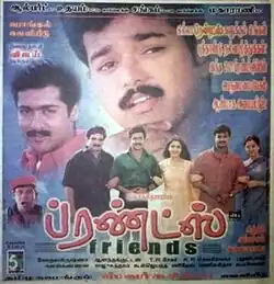 Friends is a 2001 Indian Tamil-language buddy drama film, directed by Siddique and produced by Appachan. It is a remake of Siddique's 1999 Malayalam film of the same name. The film stars Vijay, Suriya and Ramesh Khanna as friends, while Devayani, Vijayalakshmi, Abhinayashree, Sriman, Vadivelu, Charle, and Radha Ravi play supporting roles. The music was composed by Ilaiyaraaja, while Anandakuttan handled cinematography.