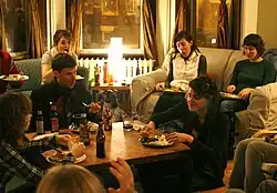 Friendsgiving is a large meal eaten with friends on or near Thanksgiving. The meal itself is often produced potluck-style, with each participant bringing items.[1][2] Those celebrated on Thanksgiving Day generally replicate a Thanksgiving dinner, while those that are additional gatherings may or may not.[2][3] Some people use Friendsgiving to test out new Thanksgiving recipes.[4][5]