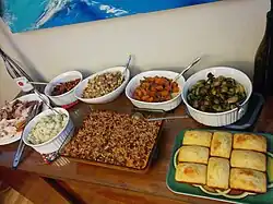 The meal is also often celebrated among groups of coworkers as a potluck holiday party.[1]