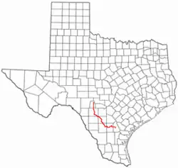 | Bridges | Camino Bajo, TX 337, Flat Rock Cir, Ranch Road 1120, River Place Road, Ranch Road 1120, Texas Hill Country Trail, Country Road 350, Country Road 348, Comanche Creek Road, County Road 348, TX 127, unnamed road, County Road 2690, County Road 101, US 90, Garner Field Road, Ranch Road 187, unnamed road, US 57, W FM 140, County Road 1581, County Road 4425, I-35, TX 85, unnamed road (x3), Natus Road, TX 97, Findley Road, TX 16, FM 99, TX 72 |
