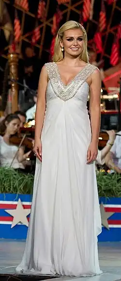 Katherine Jenkins OBE (born 29 June 1980) is a Welsh singer. She is a mezzo-soprano and performs operatic arias, popular songs, musical theatre, and hymns.[1][2][3]