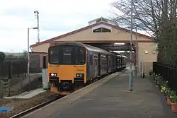 Frome station was designed by J R Hannaford. It is one of the oldest through train shed railway stations still in operation in Britain. The unusual station structure consists of a 120 by 48 foot (36.5 x 14.6 metres) timber train shed, supported by 12 composite trusses with a span of 49 feet (15 m).[1] The station has two platforms, one of which is now unused due to the line being made into a single track.[2] It is now a Grade II listed building.[3]