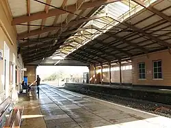 Frome station was designed by J R Hannaford. It is one of the oldest through train shed railway stations still in operation in Britain. The unusual station structure consists of a 120 by 48 foot (36.5 x 14.6 metres) timber train shed, supported by 12 composite trusses with a span of 49 feet (15 m).[1] The station has two platforms, one of which is now unused due to the line being made into a single track.[2] It is now a Grade II listed building.[3]