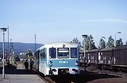 Freight traffic was discontinued in sections. No freight trains ran between Gernrode and Frose from 1 January 1998 and between Quedlinburg and Gernrode from 10 June 2001.[4] The route was used for regular rail passenger services until 2003. The 2003 annual timetable listed a total of eight daily train pairs on the Quedlinburg–Aschersleben route under KBS 332: Quedlinburg–Gernrode–Aschersleben. This route required these trains to reverse in Frose station. Other trains on weekdays provided extra services between Quedlinburg and Ballenstedt Ost to provide hourly services.[5]