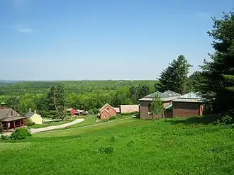 Fruitlands, inspired by Transcendentalism and Amos Bronson Alcott's ideas of societal reform, was established on 90 acres (360,000 m2) purchased by Charles Lane in May 1843.[3] People interested in joining the community began moving in the next month and the site was optimistically named "Fruitlands" despite having only a small cluster of apple trees. The community was based on self-sufficiency, using no hired labor and growing all the food they needed themselves.[4] The community ultimately failed because of the difficulty in growing crops. Community members began moving away as early as October 1843; Lane and Alcott abandoned it in January 1844.[5]