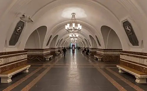 - ^ Информационная служба портала Стройкомплекса (2016-12-29). "Вестибюль станции метро "Фрунзенская" обрел исторический облик". stroi.mos.ru. Комплекс градостроительной политики и строительства города Москвы. Archived from the original on 2017-10-17. Retrieved 2017-04-04.