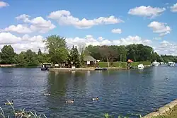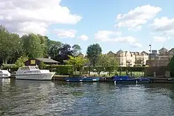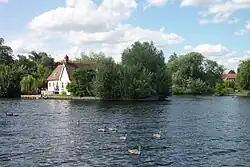 Fry's Island is a natural island, the only access to it being by boat. It is home to a private house (De Montfort House), a boatyard with a residence (Caversham Boat Services) and a private bowling club (the Island Bohemian Club). Each of these occupants runs their own private ferry service. Administratively, the island forms part of Reading's Abbey Ward.[1][2]