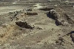 All of the walls are largely made of rubble from the local granite, with flat stones being used for the foundations. Sandstone was occasionally used. There is evidence of mudbricks, but they have not survived.[1]
