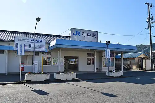 Fuchū Station (府中駅, Fuchū-eki) is a passenger railway station located in the city of Fuchū, Hiroshima Prefecture, Japan. It is operated by the West Japan Railway Company (JR West).[1]