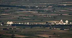 The Fucino Space Centre is the largest teleport in the world for civilian uses used for the control of artificial satellites, for telecommunications and for hosting, television and network services multimedia. Located in the Fucino plain in Abruzzo within the municipal area of Ortucchio, near Avezzano (AQ), central-east Italy, it is named after the engineer Piero Fanti, first director of Telespazio, and managed by the same company consisting of two joint ventures, the Italian Leonardo (Finmeccanica) for 67% and the French Thales for the remaining 33%.[1][2]