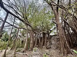 On the island, there are three individual trees which are locally renowned due to their age and size. The first is the Arbol que camina, which is a Ficus benghalensis tree that has grown multiple aerial roots that give it a walking appearance.[8] The second is a Sterculia apetala tree called Tun-Tun, whose name was derived from the sound of one's heartbeat that can be heard while hugging the tree due to its hollow nature.[9] The last of three is a large Ceiba pentandra tree called La bonga.[10]