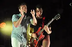 Fun (stylized as fun.) was an American pop rock band based in New York City.[3] The band consists of Andrew Dost (of Anathallo) and Nate Ruess (of the Format),[5] and formerly Jack Antonoff (of Bleachers).