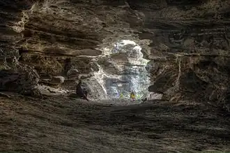 The park is in the Caatinga biome and has an area of 8,518 hectares (21,050 acres).[2] The park lies in the municipalities of Baraúna and Mossoró in the state of Rio Grande do Norte.[4] Furna Feia (Ugly Cavern) is the largest cave complex in the state of Rio Grande do Norte. So far more than 200 caves have been found.[3] The main cave is 766 metres (2,513 ft) long, and is the most important attraction in the park.[1] The park holds about 105 species of plants and 135 species of animals, some of which are endangered.[3] Eleven species of troglobite invertebrates have been found, all new to science.[1]