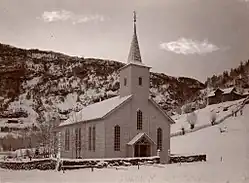 On Sunday, 11 January 1959, shortly after the worship service, the church caught fire and burned to the ground. Immediately, the parish set out to rebuild the church. Ole Halvorsen was hired to design the new church which would be built on the same site as the previous church building. The new building was consecrated on 2 September 1962.[3][4][5]