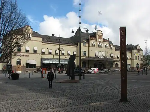 Gävle Central Station is located in the city of Gävle, Sweden, at the East Coast Line and the endpoints of the Bergslagen Line and the Northern Main Line. Fast long-distance trains stop here, and also regional trains in multiple directions. The station is located around 300 metres (980 ft) from the traditional midpoint of the city. Regional and city buses stop nearby. The Swedish Railway Museum is located in the southern part of Gävle.
