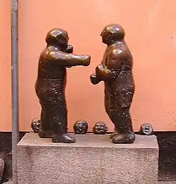 On the square is a one metre tall bronze sculpture on a granite base, Tungviktare ("Heavyweights") from 1967 by the sculptor Sven Lundqvist.[2]