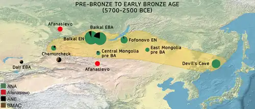 - ^ Jeong, Choongwon (12 November 2020). "A Dynamic 6,000-Year Genetic History of Eurasia's Eastern Steppe". Cell. 183 (4): 890–904.e29. doi:10.1016/j.cell.2020.10.015. hdl:21.11116/0000-0007-77BF-D. ISSN 0092-8674. PMC 7664836. PMID 33157037.