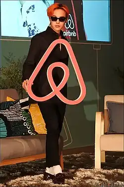 G-Dragon along with BigBang are among Korea's highest paid celebrities over endorsements, reportedly having an asking price of $1–1.5 million USD per endorsement in 2011.[212] In August 2015, he became the face of Airbnb in the Asian market.[213] In 2016, G-Dragon started endorsing Shinsegae, the largest retailer in South Korea and his merchandises were reported to take up over 49% of sales in the YG store.[214] He also endorsed the Italian sportswear label Kappa as part of their 100th anniversary and it was reported that he earned US$1.9 million from the brand.[215][216] He was selected as the face of Hyundai's Verna concept vehicle, appearing at an auto show in Beijing which saw 10,000 fans gather to see him in person.[217] In 2017, G-Dragon endorsed Vidal Sassoon in China,[218] he also joined Nike's Air Max Day global campaign and endorsed the Vapormax shoe, causing instant sell-outs across online stores in South Korea.[219] The same year, he was announced as the official ambassador of luxury resort Jeju Shinhwa World, located on Jeju Island, in which he directly participated in the development of the resort complex.[220] After completing his military service, he has been an ambassador for brands such as Nongfu Spring,[221] TS shampoo,[222] Tiger Beer,[223] BMW,[224] and Hana Financial Bank.[225]
