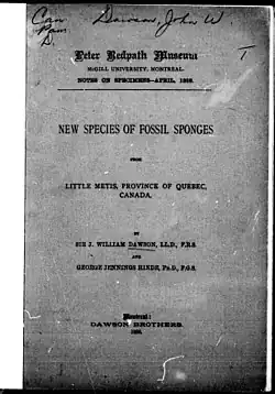 In 1888, he published with John William Dawson New species of fossil sponges from Little Metis, province of Quebec, Canada.