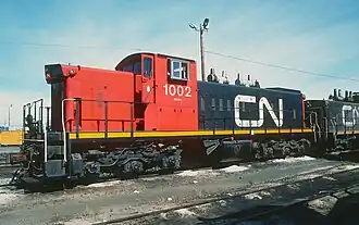 The GMD GMD1 is a diesel locomotive originally produced by General Motors Diesel (GMD), the Canadian subsidiary of General Motors Electro-Motive Division, between August 1958 and April 1960. This road switcher locomotive is powered by a 12-cylinder EMD 567C diesel engine, capable of producing 1,200 horsepower (890 kW). The GMD1 was built on either Flexicoil A1A-A1A (for light-rail prairie branchlines) or Flexicoil B-B trucks. One hundred and one were built, Canadian National (CN) purchased 96 and Northern Alberta Railways (NAR) the remaining five, which later became part of CN's fleet when they acquired majority interest in NAR.[1]
