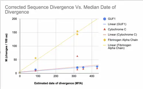 GUF1 has orthologs[16] in many organisms, including vertebrates, and some invertebrates. 20 GUF1 orthologs sorted by taxonomy, sequence data, and classification.[16] The high similarity[17] highlights GUF1's evolutionary importance as it remains conserved in species over time.