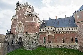 In the following centuries, the castle was inhabited by several noble lords, amongst them René de Renesse, 1st Count of Warfusée, who acquired the castle and restored the buildings. It obtained its pseudo-medieval appearance as the result of a renovation during the years 1887–1898. The works were executed by the architect Charles Albert and ordered by the Marquise Arconati-Visconti (née Marie Peyrat) who owned the castle at that time, having inherited it from her husband. At her death in 1923, the Marquise donated the castle to the Belgian State, including the art collection and the grounds.