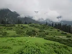 Gabin Jabba (Pashto: ګبين جبه), which in Pashto means Honey marshes, is located approximately 65 km from Mingora on Matta Sakhra road within the Swat valley of the Khyber Pakhtunkhwa province of Pakistan.[1] It is an area in Swat Valley with green meadows, thick forests, snow-clad mountains, mineral springs and high peaks. Gabin Jabba elevation is 2582 m (8471 ft) from the sea level.[2]