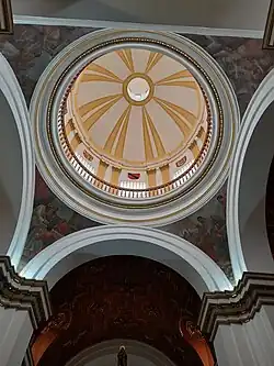 There one of the most representative collections of the work of the Santa Fe painter Gregorio Vásquez de Arce y Ceballos, who made a large number of works for the ornamentation of the temple, is preserved.[5] He made more than fifty paintings to decorate the chapel (of which thirty-six are preserved), commissioned by Gómez de Sandoval. Among them stand out: The Evangelists; The Last Supper (with 25 larger-than-life figures); Biblical scenes; The mystical betrothal of Saint Catherine, etc.[6]