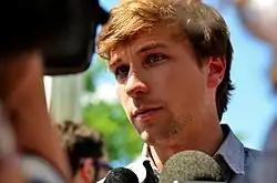 Ever since the beginning of the 2012 Quebec student protests, Nadeau-Dubois was considered by the media as one of the leaders of the student movement, along with Léo Bureau-Blouin and Martine Desjardins, if not the leader (although they were officially referred to as spokespersons).[1][9] Indeed, the CLASSE is based on direct democracy; it does not have any leaders, but instead has spokespersons, of which Nadeau-Dubois was one along with Jeanne Reynolds.[9]