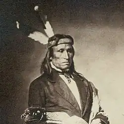Gabriel Renville (April 1825 – August 26, 1892), also known as Ti'wakan (Sacred Lodge), was a US-government appointed chief of the Sisseton Wahpeton Oyate Sioux Tribe from 1866 until his death in 1892. He opposed conflict with the United States during the Dakota War of 1862 and was a driving force within the Dakota Peace Party. In 1863, Renville volunteered to serve as a Dakota scout serving in US military leader Henry Hastings Sibley's punitive expedition against Dakota escapees, hunting those considered "hostile" including Little Crow.[1] Renville would become chief and superintendent of scouts in 1864. Gabrielle Renville's influence and political leadership were critical to the eventual creation of the Lake Traverse Indian Reservation, which lies mainly in present-day South Dakota.